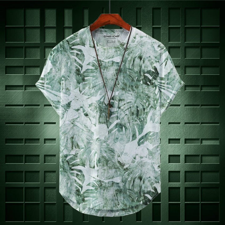 GREEN TEXTURED LEAVES Printed Longline T-Shirt By Takeincart. Flaunt your style with the awesome collection of Stylish T-shirts from Takeincart.
